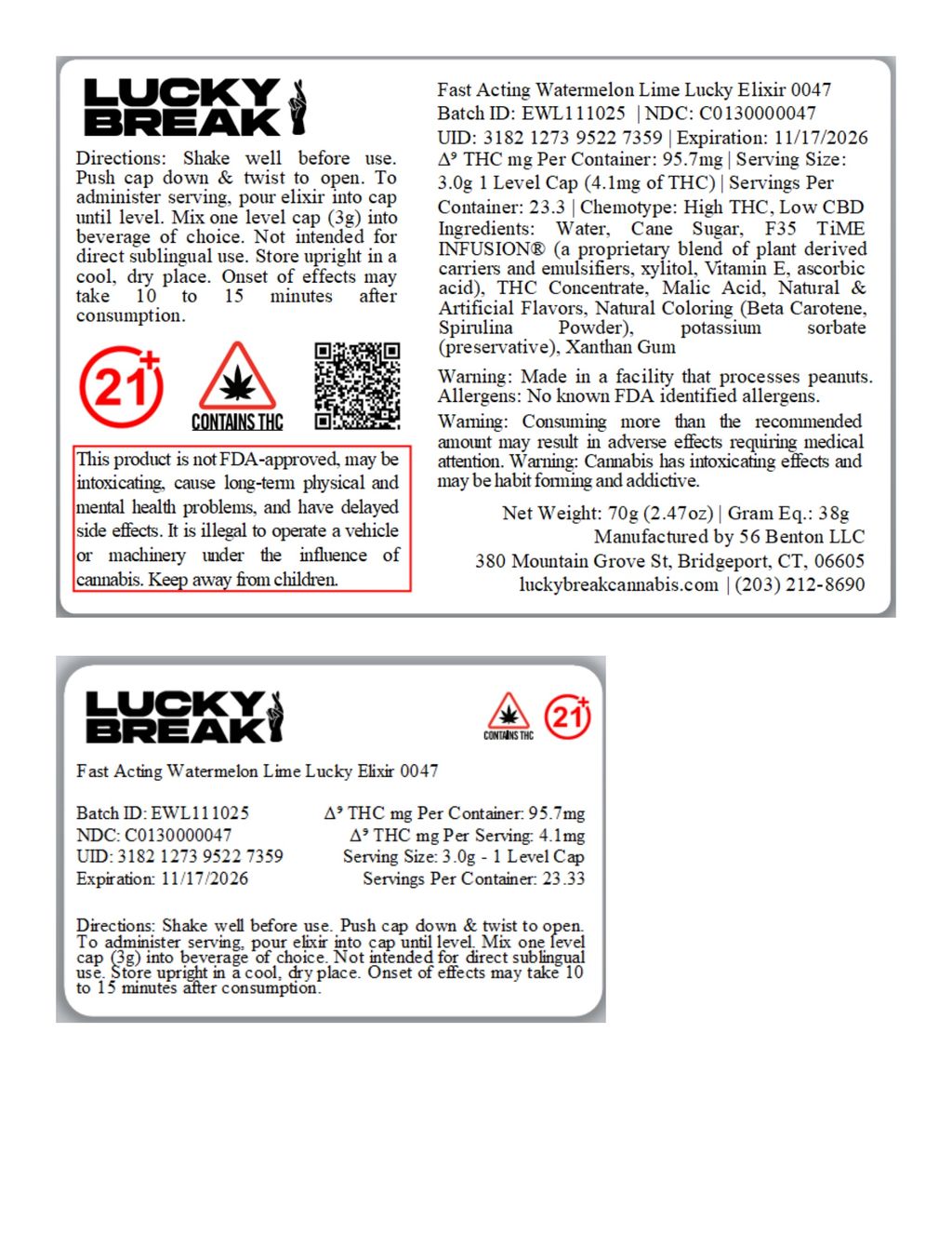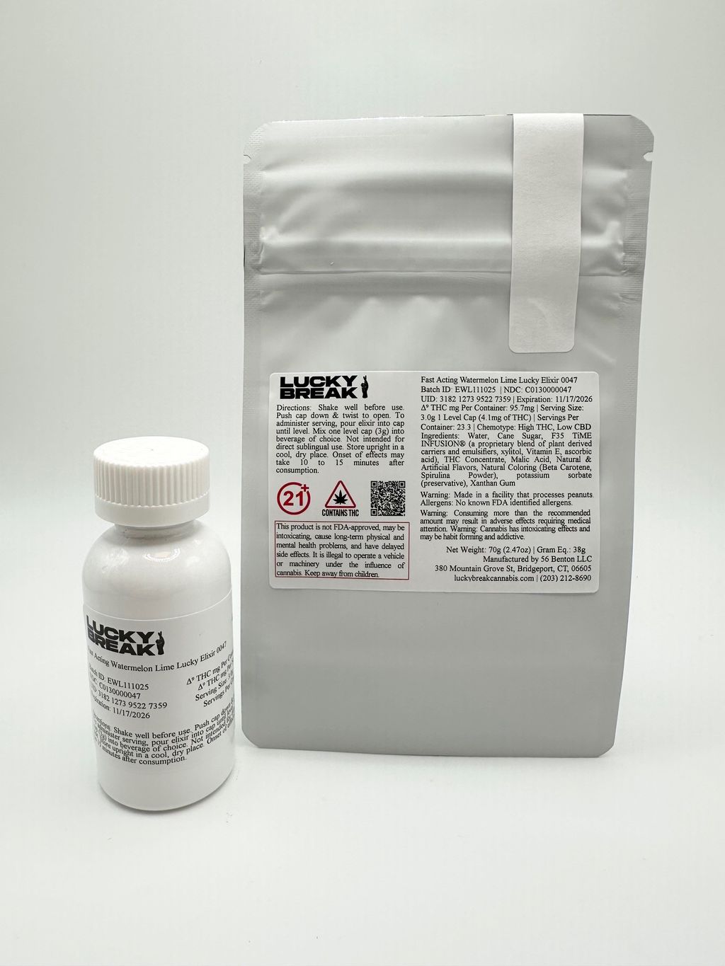 Lucky Elixir — Elevate Every Sip. Introducing Lucky Elixir, the newest flavor-forward THC beverage additive for the Connecticut rec market! Each bottle delivers approximately 95mg THC per package and about 4mg per level capful, giving you total control over your experience. Available in three delicious flavors — Blueberry Lemonade, Fruit Punch, and Watermelon Lime — Lucky Elixir is perfect for anyone looking to mix flavor and potency into their on-the-go flow. Pour up an Elixir Mixer! - Enjoy Lucky Elixir your way with these easy at-home mocktail: Watermelon Lime Cooler- Juicy, tart, and summer-vibes — anytime. ½ cup cold watermelon juice (store-bought or blended fresh) ¼ cup limeade or a squeeze of half a lime 1 serving of Lucky Elixir – Watermelon Lime Optional: mint leaves or lime wedge. Serve over ice in a tall glass.