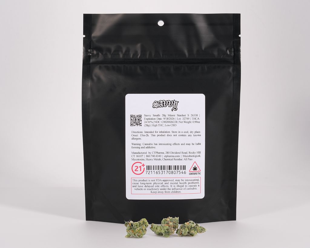 Miami Stardust, a sativa strain, is a blend of Collins Ave and Medellin. Its effects bring relaxation, happiness, and upliftment. With flavors of nutty undertones, tangy lemon, and subtle tea, it's perfect for creative endeavors or simply enhancing your mood.