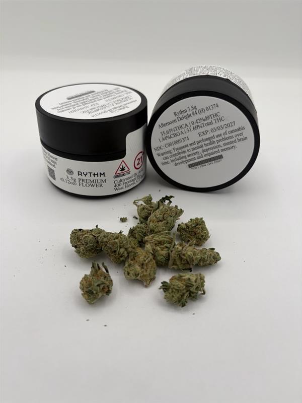 Afternoon Delight #4 is a 50% sativa and 50% indica weed strain made from a genetic cross between GMO and Trophy Wife. This strain is a balanced and blissful hybrid that offers a hazy and euphoric high. Afternoon Delight #4 has a pungent and diesel aroma with earthy undertones. The buds are dense and frosty, with dark green and purple hues. Leafly customers tell us Afternoon Delight #4 effects include relaxation, creativity, and arousal. Bred by RYTHM, Afternoon Delight #4 features flavors like diesel, earthy, and spicy. The dominant terpene of this strain is myrcene. If you’re looking for a balanced and blissful hybrid that can help you unwind and enjoy the moment, Afternoon Delight #4 might be the strain for you.