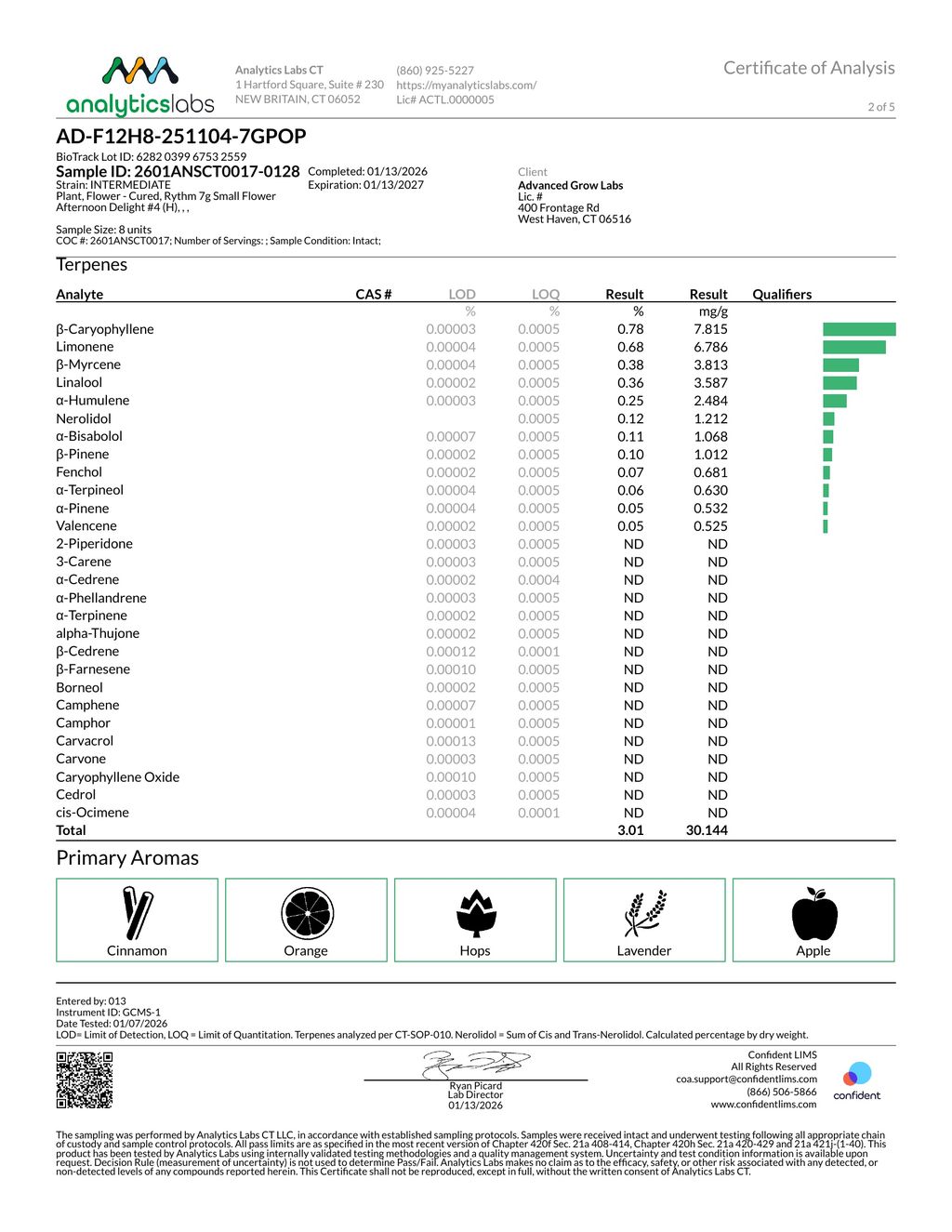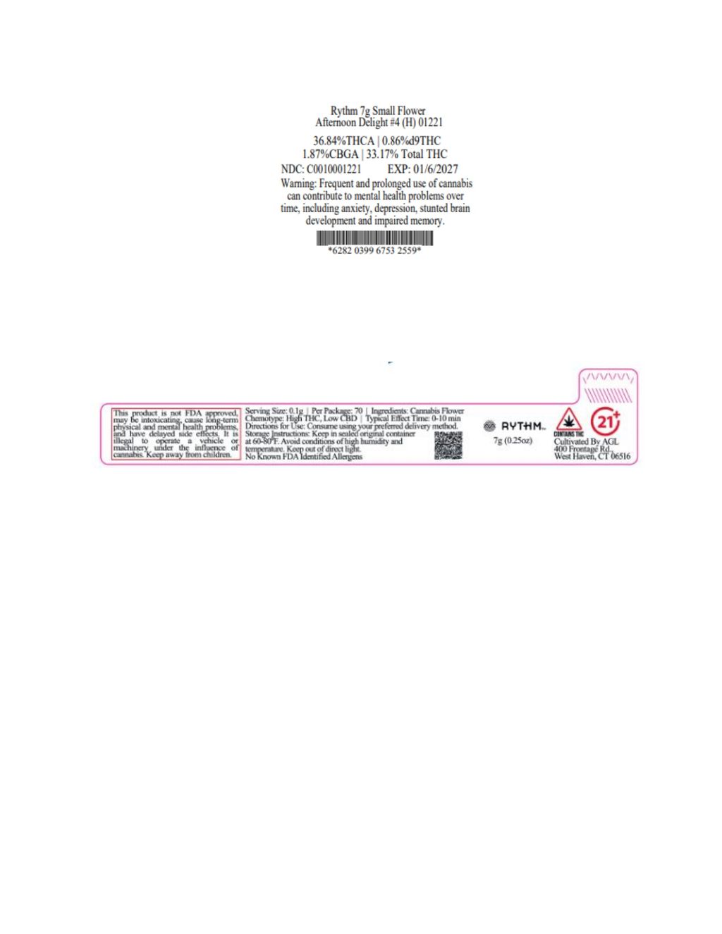 Afternoon Delight #4 is a 50% sativa and 50% indica weed strain made from a genetic cross between GMO and Trophy Wife. This strain is a balanced and blissful hybrid that offers a hazy and euphoric high. Afternoon Delight #4 has a pungent and diesel aroma with earthy undertones. The buds are dense and frosty, with dark green and purple hues. Leafly customers tell us Afternoon Delight #4 effects include relaxation, creativity, and arousal. Bred by RYTHM, Afternoon Delight #4 features flavors like diesel, earthy, and spicy. The dominant terpene of this strain is myrcene. If you’re looking for a balanced and blissful hybrid that can help you unwind and enjoy the moment, Afternoon Delight #4 might be the strain for you.