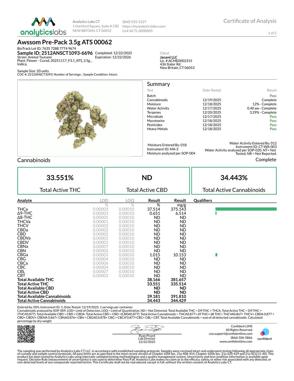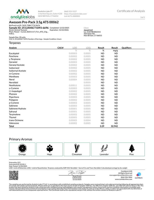 A super delicious bud with an even more delightful high, Animal Tsunami is a great choice for any fan of soothing indica strains. This bud has a mouthwateringly sugary and creamy nutty caramel taste with hints of woody pine to it, too. The aroma is very similar, with a sugary nutty cookie overtone accented by woody pine and earthy, spicy herbs. The Animal Tsunami high will settle in a few moments after your final toke, filling your mind with a near immediate sense of lifted yet calming euphoria. You'll feel mentally at ease, free of any bad moods, negative vibes or racing thoughts to speak of. A relaxing body high finishes everything out, settling into your limbs and leaving you feeling slightly couch-locked and totally at ease.