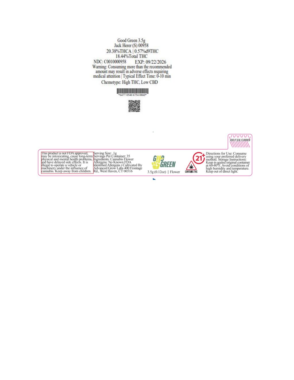 Jack Herer Flower | T18.44% | 00958 | 3.5g"