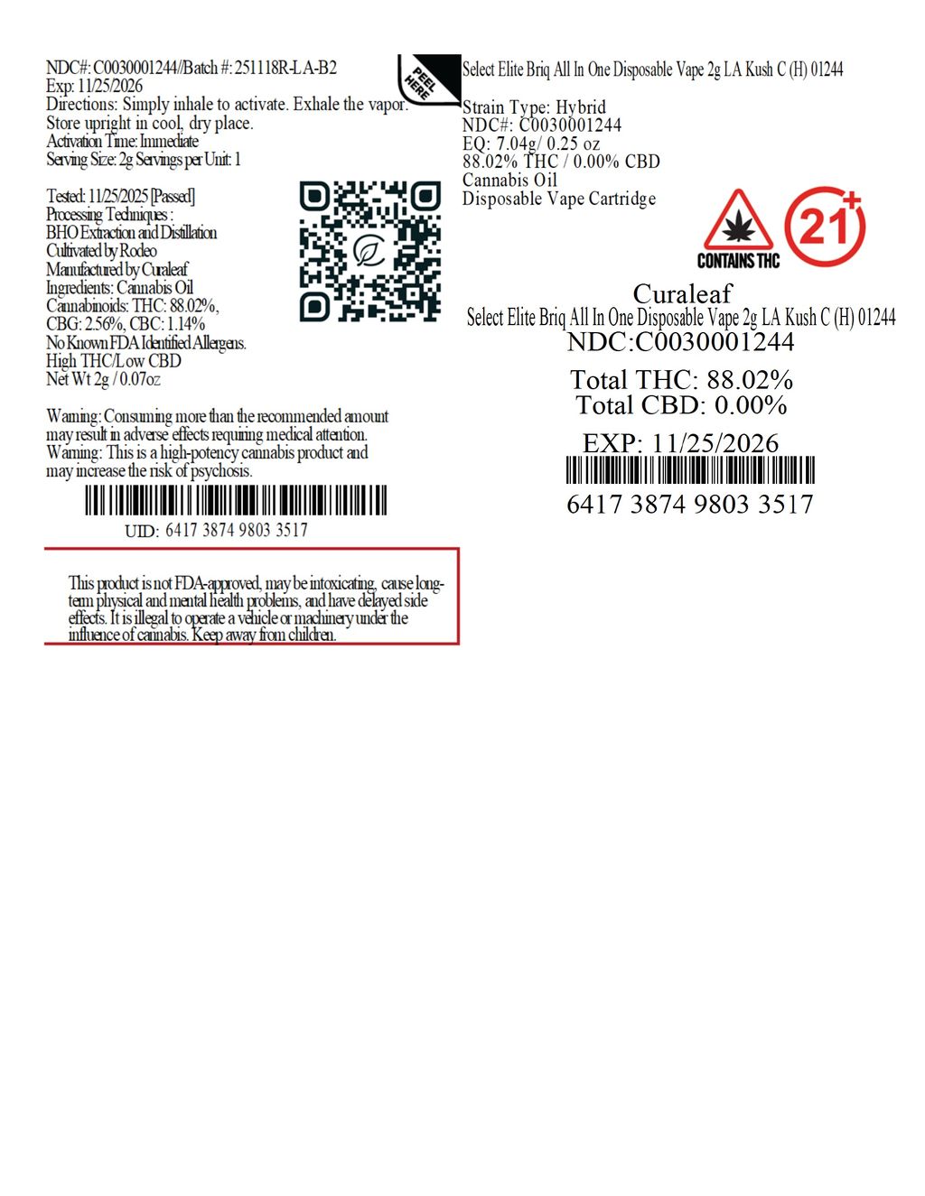 Elite LA Kush Cake Disposable