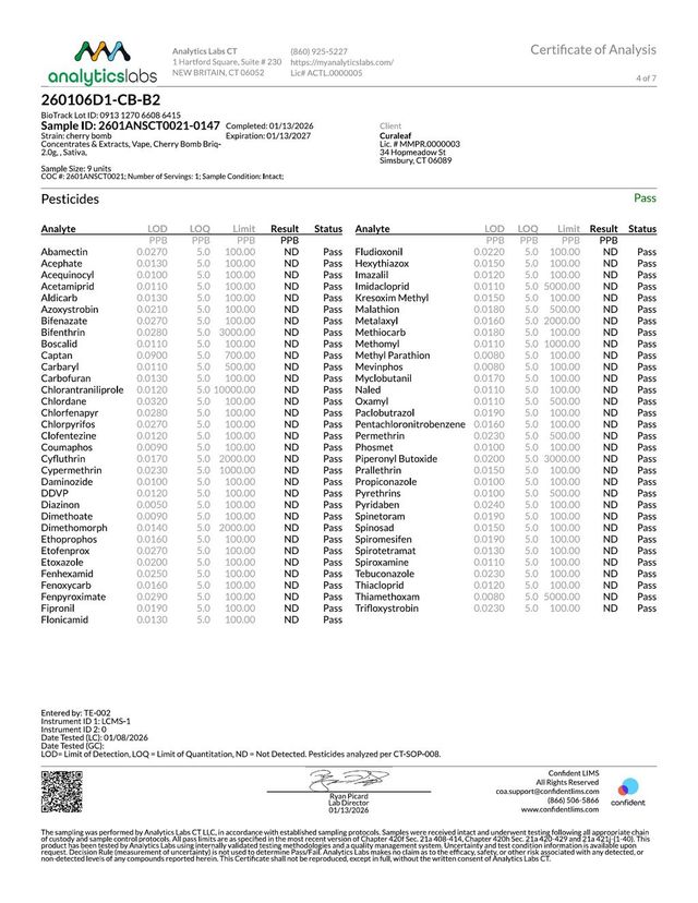 Cherry Bomb is popular thanks to its reputation as a great strain for daytime consumption, providing mild to moderate effects. Effects take off fast, giving many consumers a strong buzz. Immediate effects tend to be active and mentally alert, but can border on antsy for some. It tends to smooth into a more focused state to allow for normal activities, and may even help you tackle that to-do list or next creative project. A popular variant of this strain crosses a California indica (most likely with some Skunk lineage) and a Hawaiian sativa from the breeders at Barney’s Farms. Cherry Bomb’s flowers will have a musky, berry aroma and a mild flavor. In 2022, Cypress Hill rapper B-Real's 'Insane' brand also released a strain named Cherry Bomb, that's a Zkittlez x Cherry Pie cross.