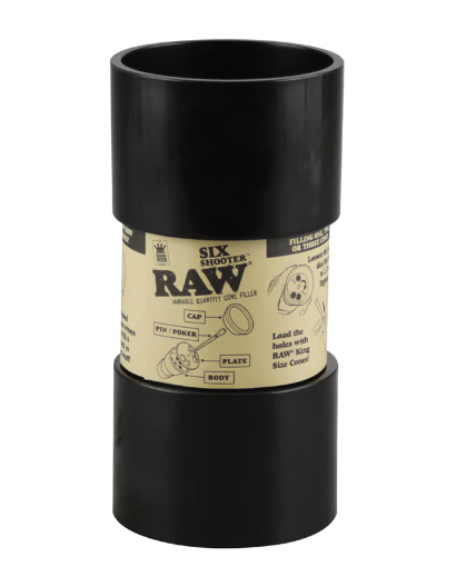 The RAW Six Shooter Kingsize Cone Filler is an easy to use manual handheld cone filler that allows you to fill from 1 to 6 cones at a time. The filler is made with a hard plastic construction that comes with easy to follow instructions. Come packaging in quality retail packaging. Available in Kingsize and 1 1/4" size options.