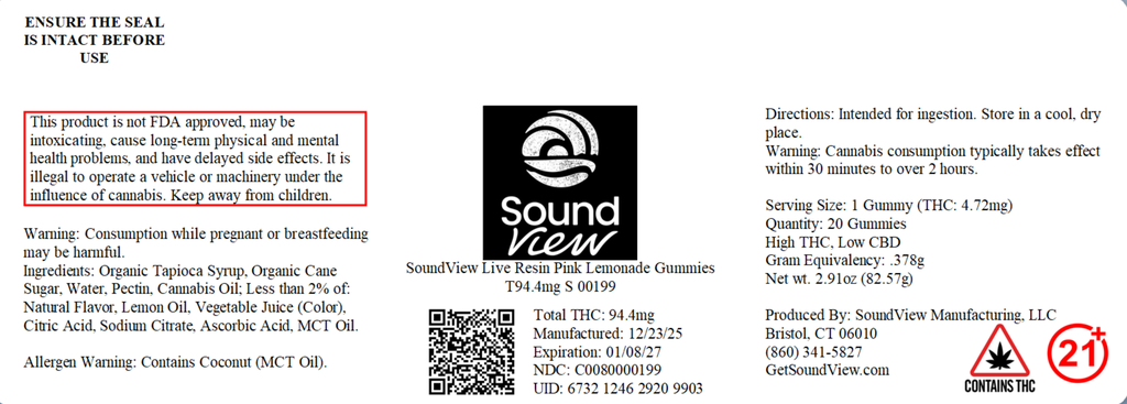 Indulge in the invigorating blend of zesty pink lemonade and THC in our infused Pink Lemonade Gummies. The sweet taste of strawberry coupled with tart lemon makes each bite as refreshing as a cool ocean dip on a hot summer’s day. Rejuvenate with SoundView.