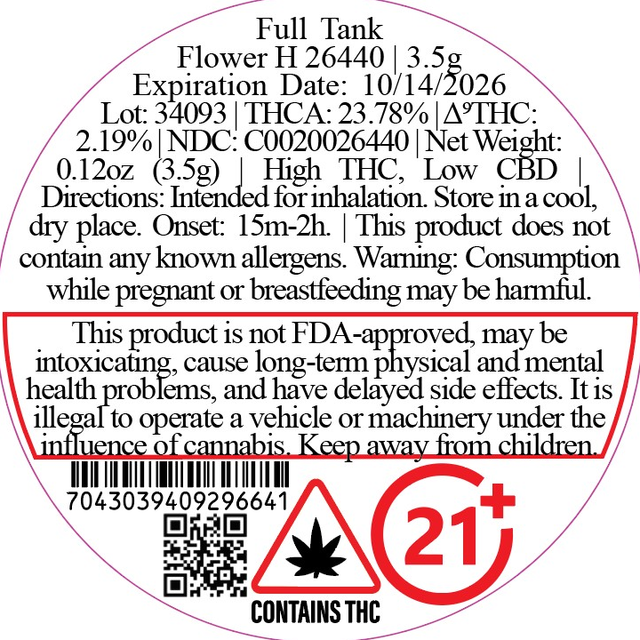 Full Tank 3.5g Whole Flower