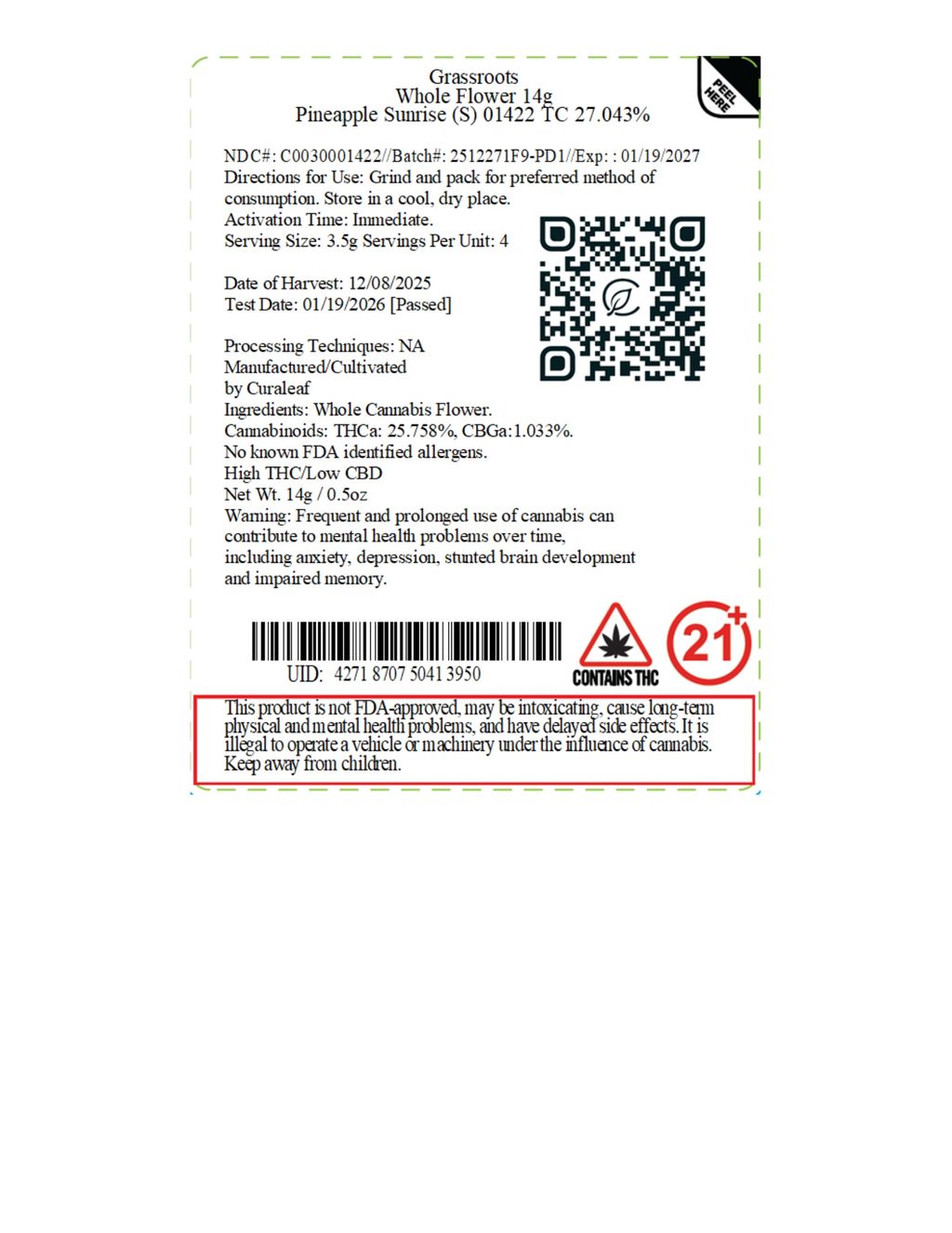 Pineapple Sunrise 14g Whole Flower
