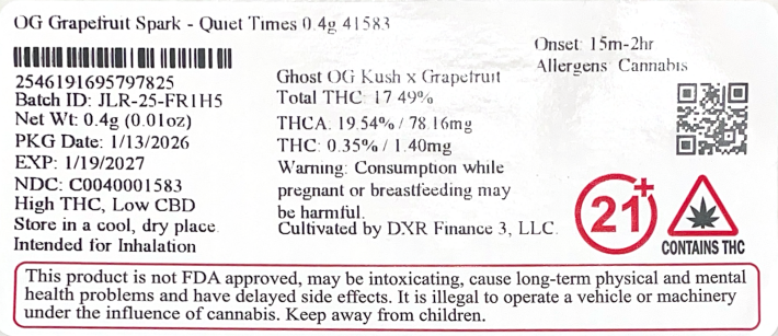 OG Grapefruit - Quiet Times 0.4g Pre-Roll
