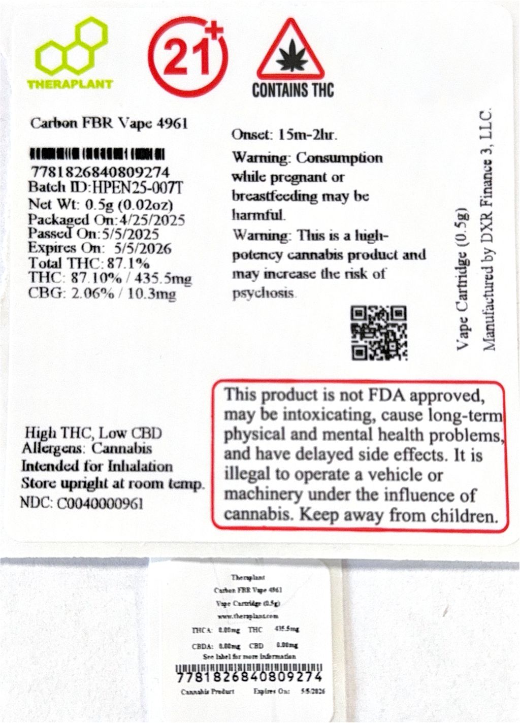 Carbon FBR Vape 4961- Hybrid Vape Cartridge (0.5g)