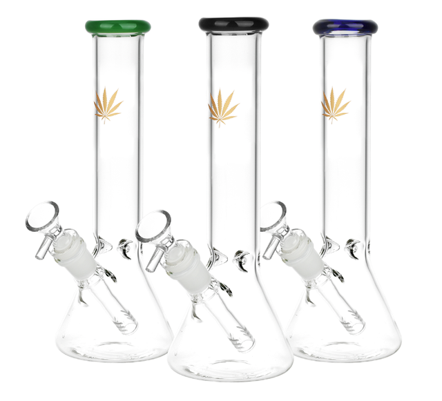 Gold Hemp Leaf Glass Beaker Water Pipe Each