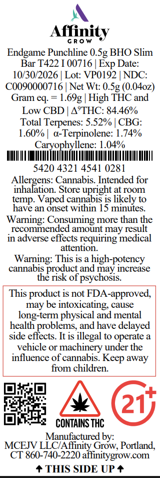 "Endgame Punchline" is a specific cannabis strain, often an indica-dominant hybrid, known for its relaxing effects. It's a product of Ethos Genetics' "End Game RBX" line, combining genetics for a potent, euphoric, yet grounding experience with fruity, gassy, and earthy notes from terpenes like Terpinolene and Caryophyllene.
