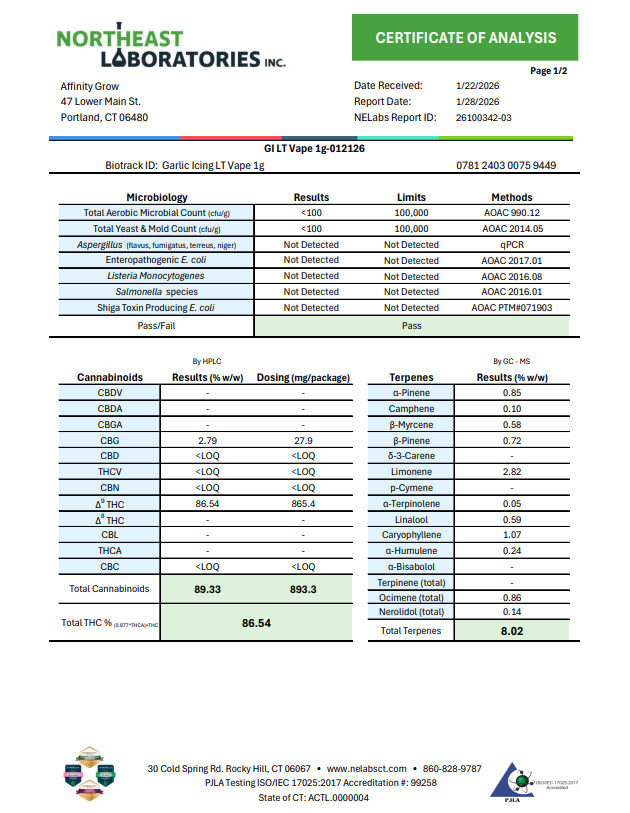 Garlic Icing Live Terpene 1g Cartridge